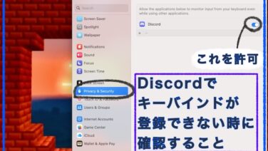 日常・雑記 Mac版Discord(ディスコード)でグローバルホットキーを設定する方法 Mac版ディスコードでグローバルホットキーを設定しようとしてちょっと手こずったのでシェアします。結論から言うと以下の設定をいじったら設定できました。システム環境設定のプライバシー&セキュリティ→キー入力の監視でDiscordを許可経緯Mac... 2025.06.27 日常・雑記